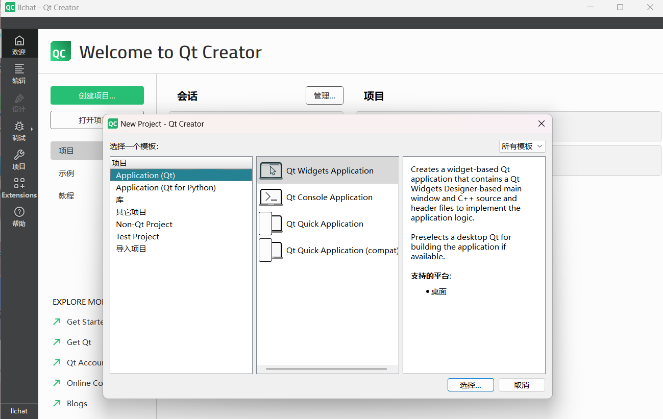 3)点击文件选择创建新文件,选择QT,然后选择创建(第二个)设计界面类型,命名为logindiglog