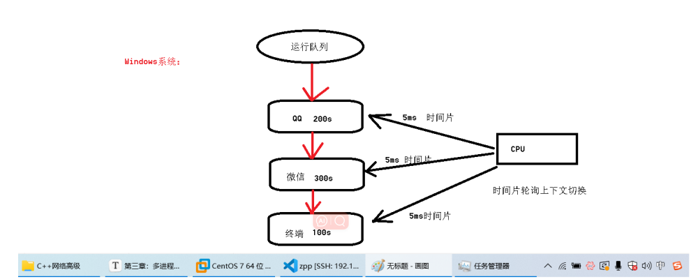 - 针对于单核CPU而言,使用相关调度机制,实现多个任务进行细化时间片轮询时,在宏观上感觉是多个任务同时执行的操作,同一时刻,只有一个任务在被CPU处理