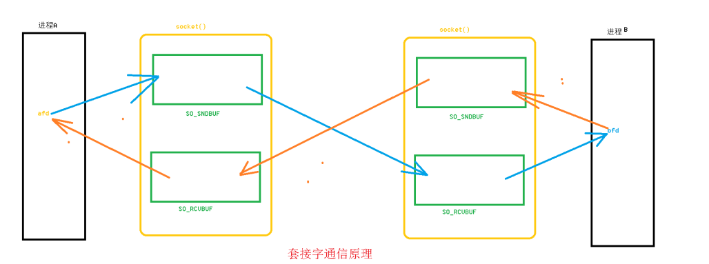 - 在通信端点中,有两个缓冲区,分别对应发送缓冲区和接受缓冲区