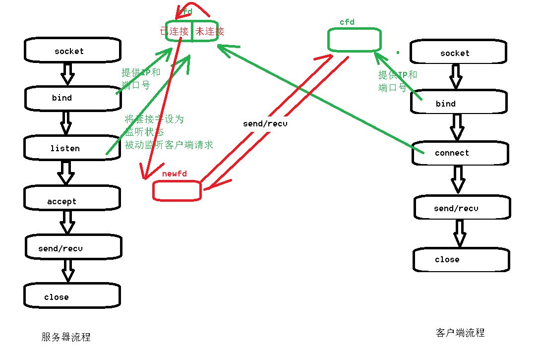 sfd = socket(); //创建用于链接的套接字文件描述符