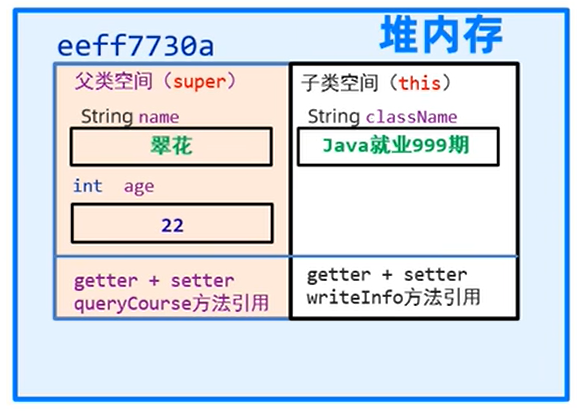 一个子类对象分为父类空间和子类空间