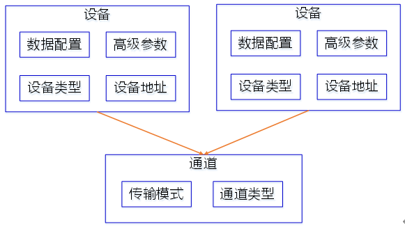 这三种通信方式统称为通道。通道是设备的关键属性,通道确定设备通信方式,是创建设备的前提。