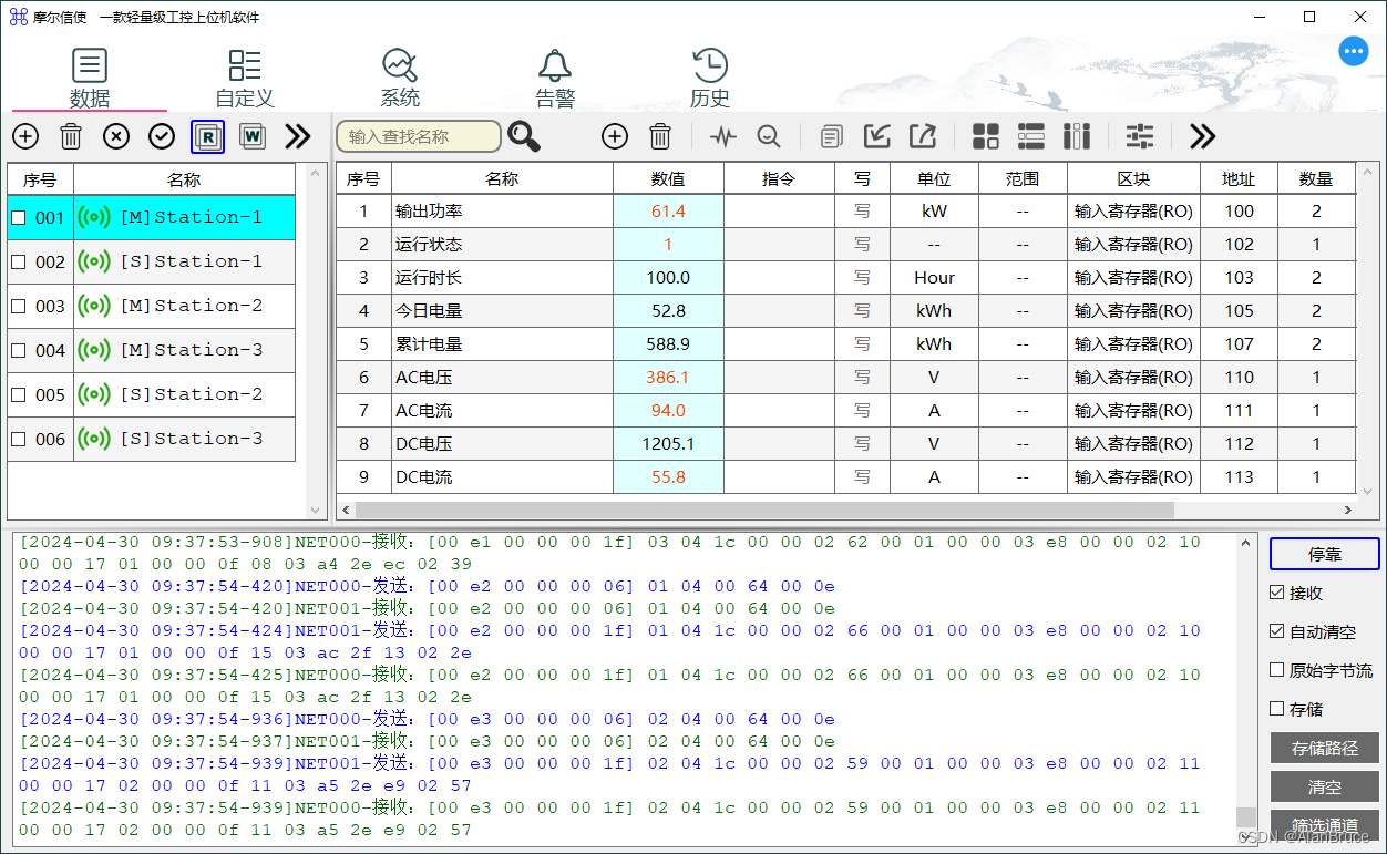 调试过程中,软件自动按配置转换,界面呈现的数据将是数据的真实内容。
