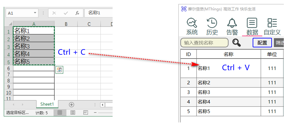 MThings支持用户拷贝多行Excel数据,并粘贴至数据配置表指定位置。