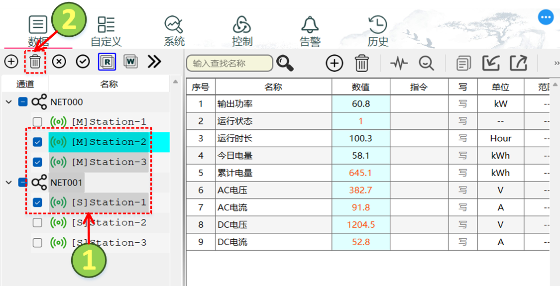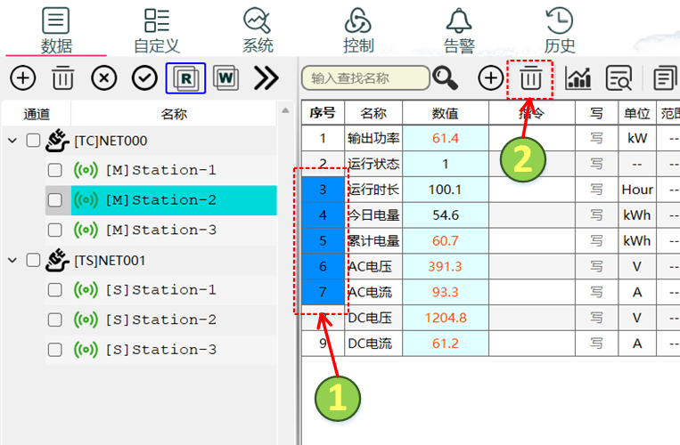 - 单击ID列,选中需要删除的数据配置,双击表头“ID”可全选或取消全选。