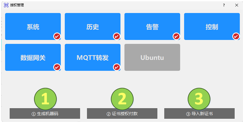- 更多功能:作为配置文件操作、通道管理、系统参数、用户管理、授权管理等功能入口。