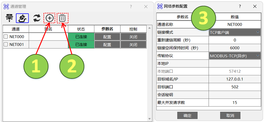 - 查看通道状态,通道状态含义如下:已关闭、已连接、故障。