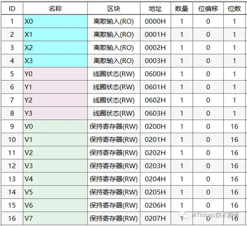 V元件支持Modbus之03、06、16功能码。