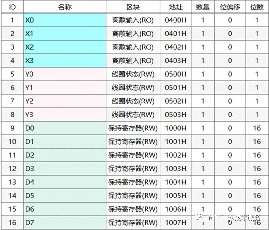 D元件支持Modbus之03、16功能码。