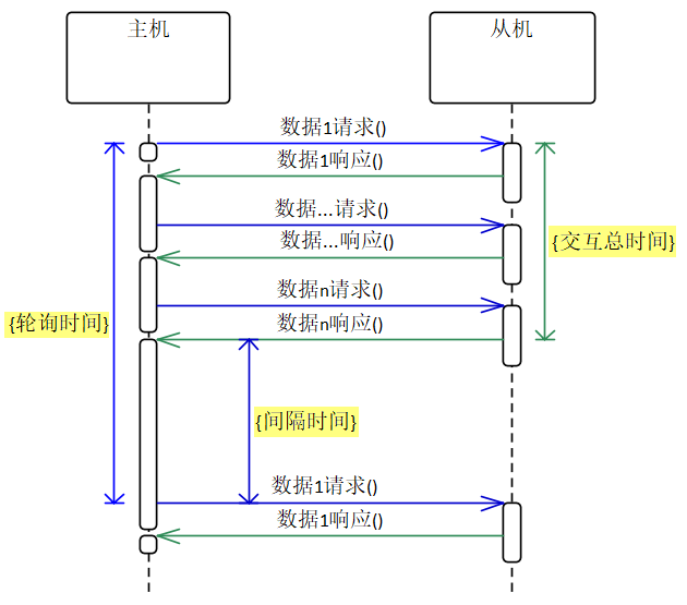 而实际应用中一般会约定一个轮询时间,设计人员确保其大于所有数据交互的总时间。