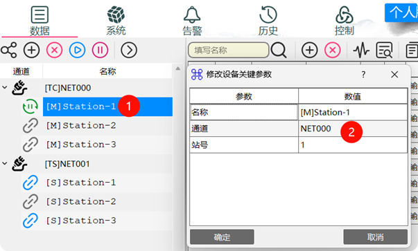 ❶双击需要修改的设备名称,也可通过右键菜单操作;