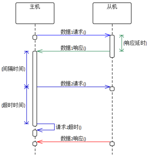 模拟主机模式下,该时间生效于收到响应(超时)之后。