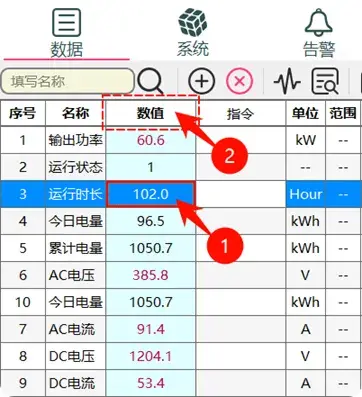 ❶双击编辑“指令”单元格,输入下发数据的目标值;