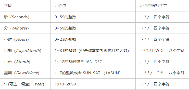 推荐使用6个域的表达式(有的定时任务器要求为6个域,否则会出错)