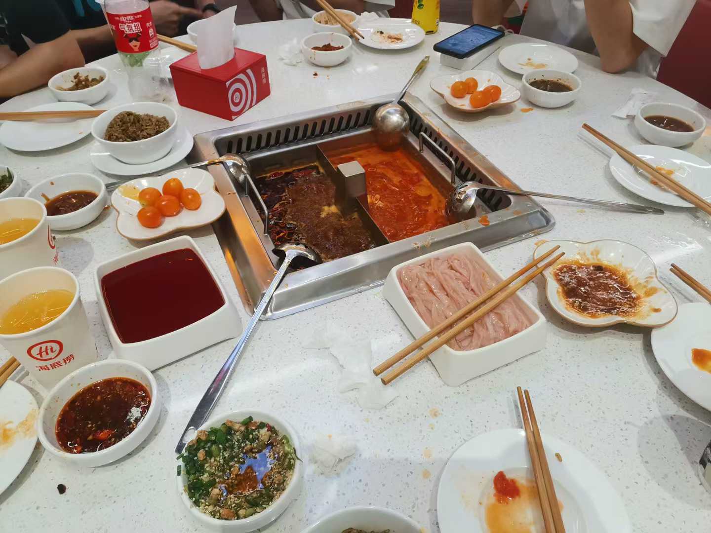比赛前一天中午从学校出发来到广工,听高中同学说校内有海底捞,热身赛都没好好打,熟悉了一下环境就直奔东区二饭海底捞了。