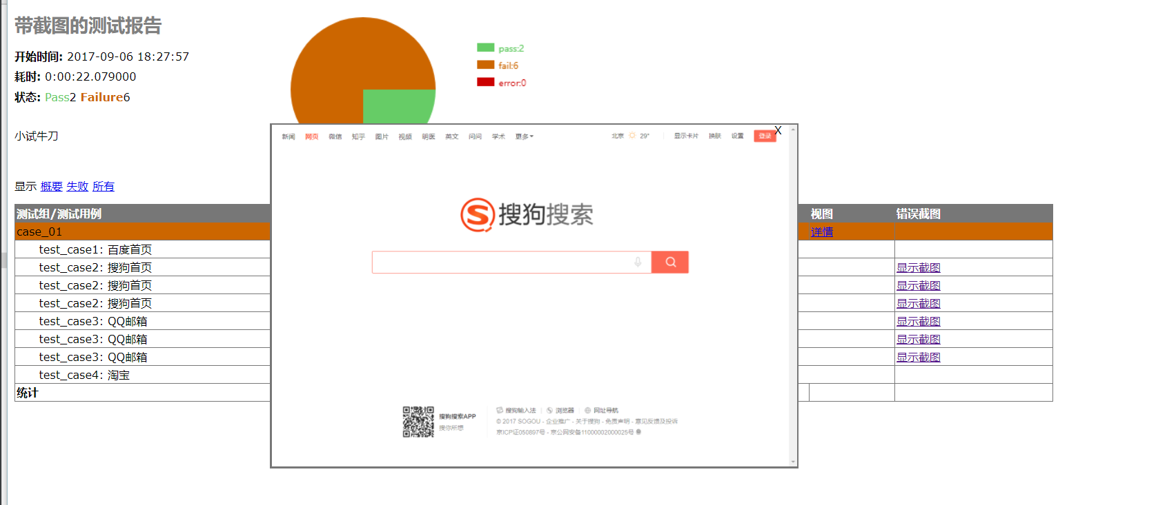 selenium测试报告(含通过率统计图和失败截图)