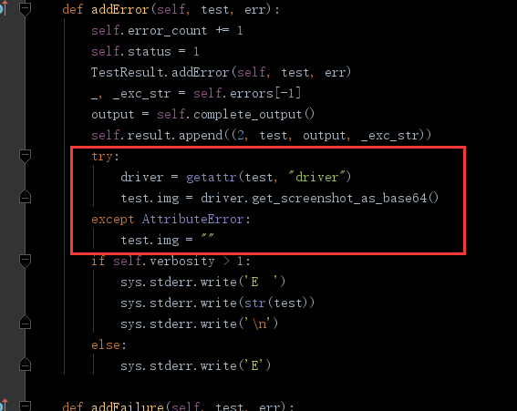 截图方法在_TestResult 的测试结果收集中,可以根据自己使用的框架不同自行调整,selenium 使用的是get_screenshot_as_base64 获取页面截图的base64编码,避免了图片文件存储的尴尬
