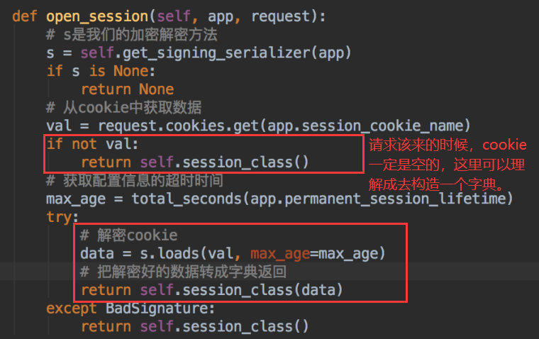 这里的open_session方法是SecureCookieSessionInterface()中的open_session,