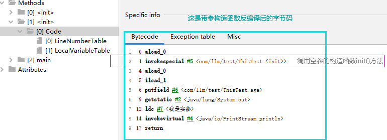 可见生成的字节码里面有两个init()方法,所以可以得知,当Java前端编译器(也就是我们经常说的编译器)把文件进行编译后,会针对不同的构造函数生成不同的init()方法,声明了多少个构造函数就生成多少个重载的init()方法