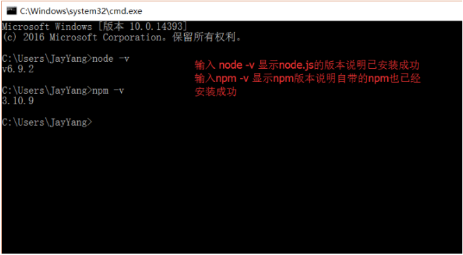 至此Node.js已经安装完成,可以先进行下简单的测试安装是否成功了,后面还要进行环境配置