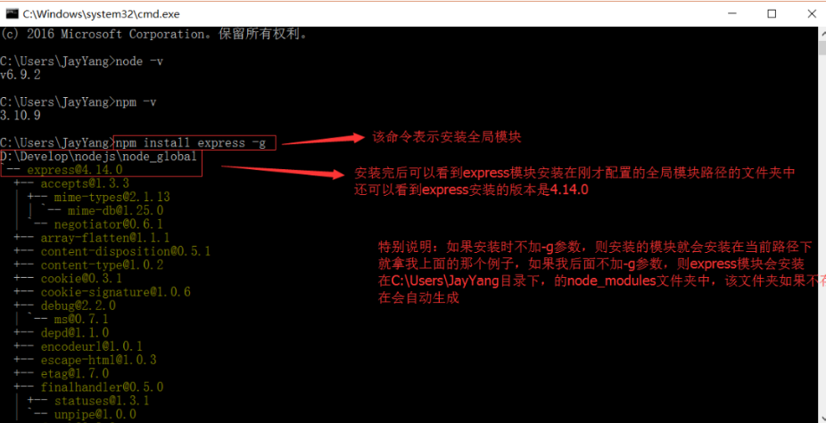 配置完后,安装个module测试下,我们就安装最常用的express模块,打开cmd窗口,