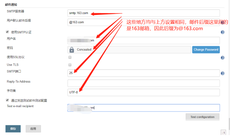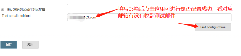 七、如果点击Test configuration后,对应邮箱可以收到测试邮件,则说明配置正确,如果报错,可根据具体报错信息查找原因重新填写相关配置