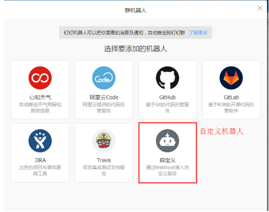 选择自定义机器人