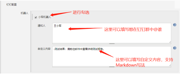 至此,只要Jenkins进行了构建,则钉钉就会收到对应提醒,钉钉插件可以支持自定义,想探索更多奇迹参考:https://jenkinsci.github.io/dingtalk-plugin/