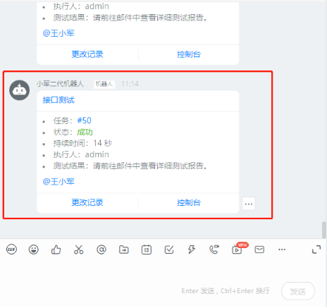 钉钉接收消息-推送结果,点击结果即可跳转到Jenkins页面