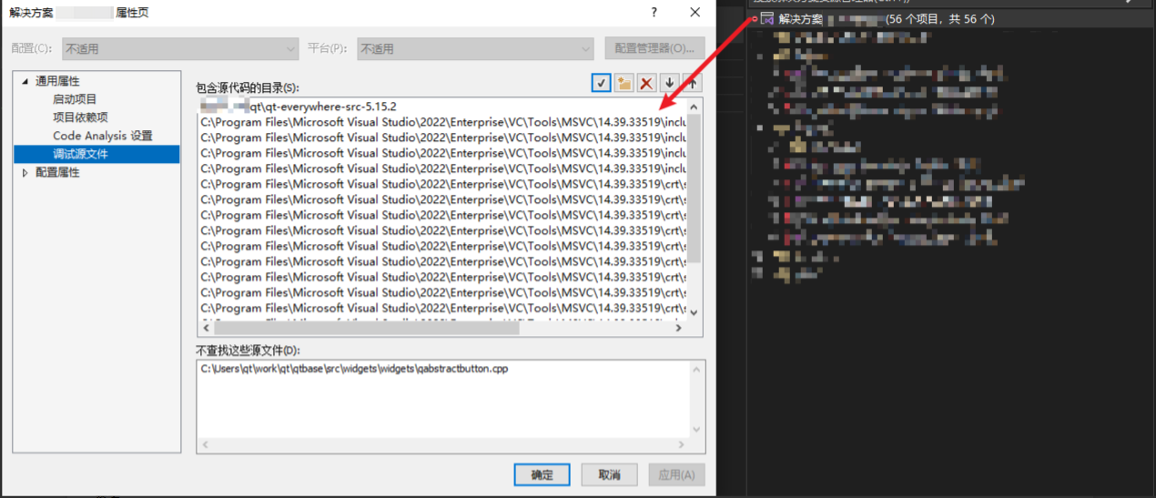 - 源码:右键解决方案【属性】【调试源文件】,添加下载的源码目录