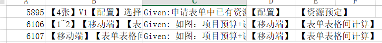 2、用例模块都是一般都用【】写在标题上,想着将【】的内容直接单独放入某一列中,但是还有一个问题是,之前研发将研发名字和周几开发用【】括起来