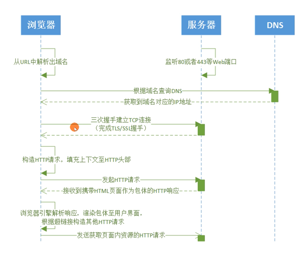 - 浏览器发起TCP三次握手