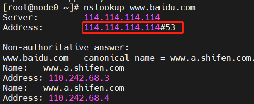 DNS是将域名转换为IP地址。而我们DNS的服务器IP地址与我们域名对应的IP地址可能不是一个。通过nslookup我们可以查询对应的DNS服务器的IP地址是多少(每个机器使用的DNS服务器可能不一样)