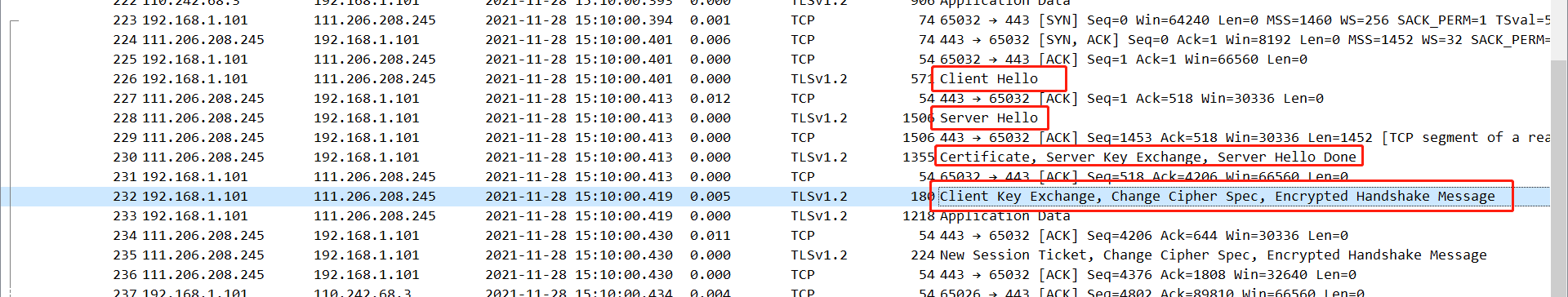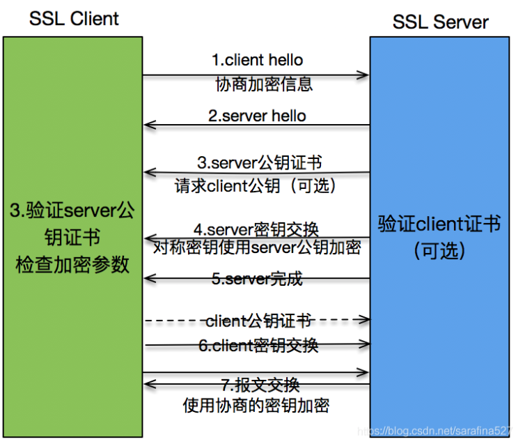 一般来说tls/ssl握手主要client hello、server hello,server发送公钥证书、server秘钥交换