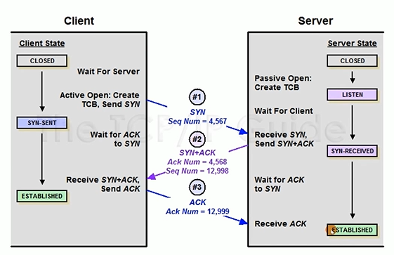 使用TCP前,必须建立连接。三次握手的目的是同步Sequence序列号(ISN)、交换TCP通讯参数