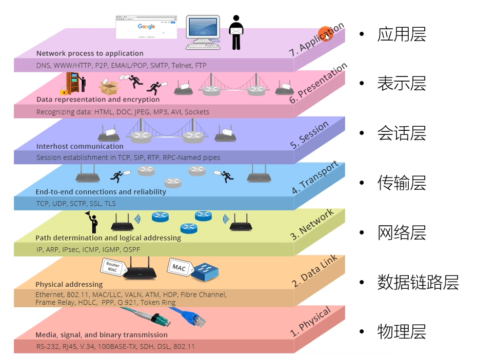 应用层:主要解决的是我们的业务问题,涉及的协议:DNS、WWW/HTTP、P2P、EMAIL/POP、SMTP、Telnet、FTP