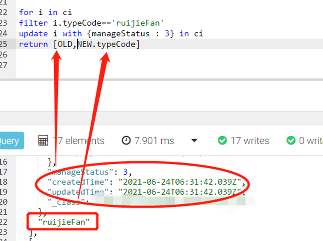 如果没有return 等参数的话,update等关键字是没有返回具体值的.在同一个查询语句中,可以同时返回NEW 和OLD;也可以只返回NEW或OLD的某个属性。Eg: NEW. TypeCode