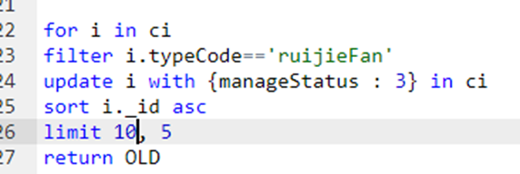 如果要批量更新符合条件的数据数据时,可以用for遍历所有的文档,并且用filter 关键字过滤出要更新的文档