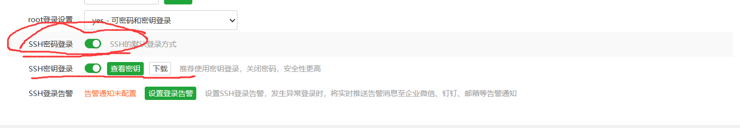 这一栏吧ssh秘钥开启并且把ssh密码登录关闭