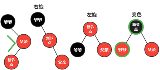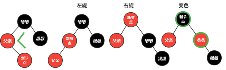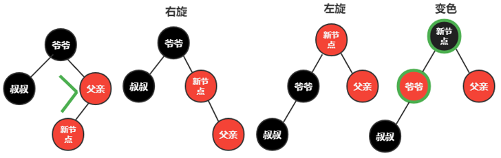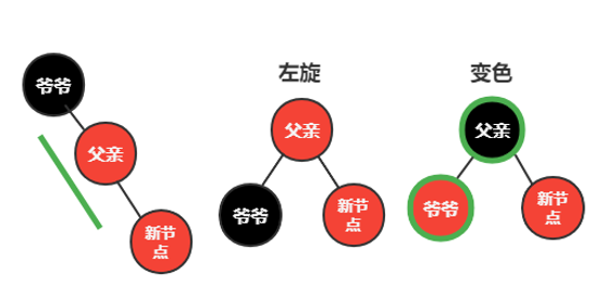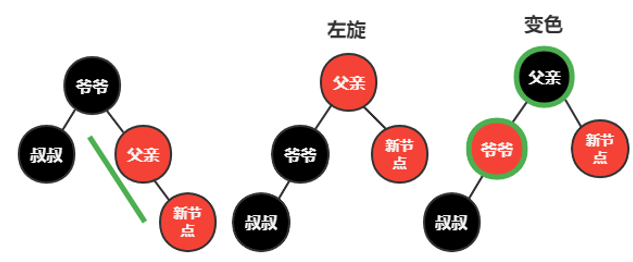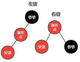 假如父亲在爷爷的左节点上,插入的节点在父亲的右节点
