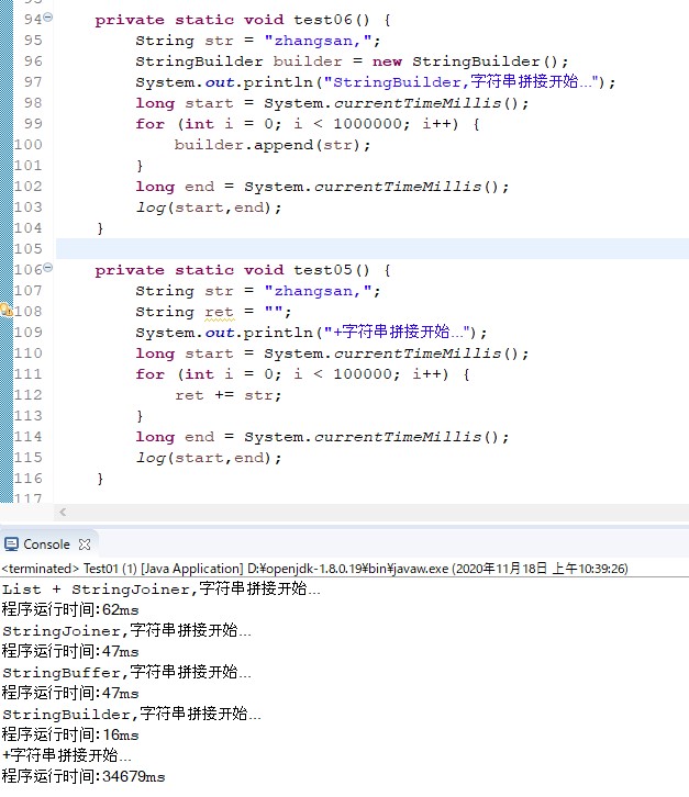 System.out.println("StringBuilder,字符串拼接开始...");