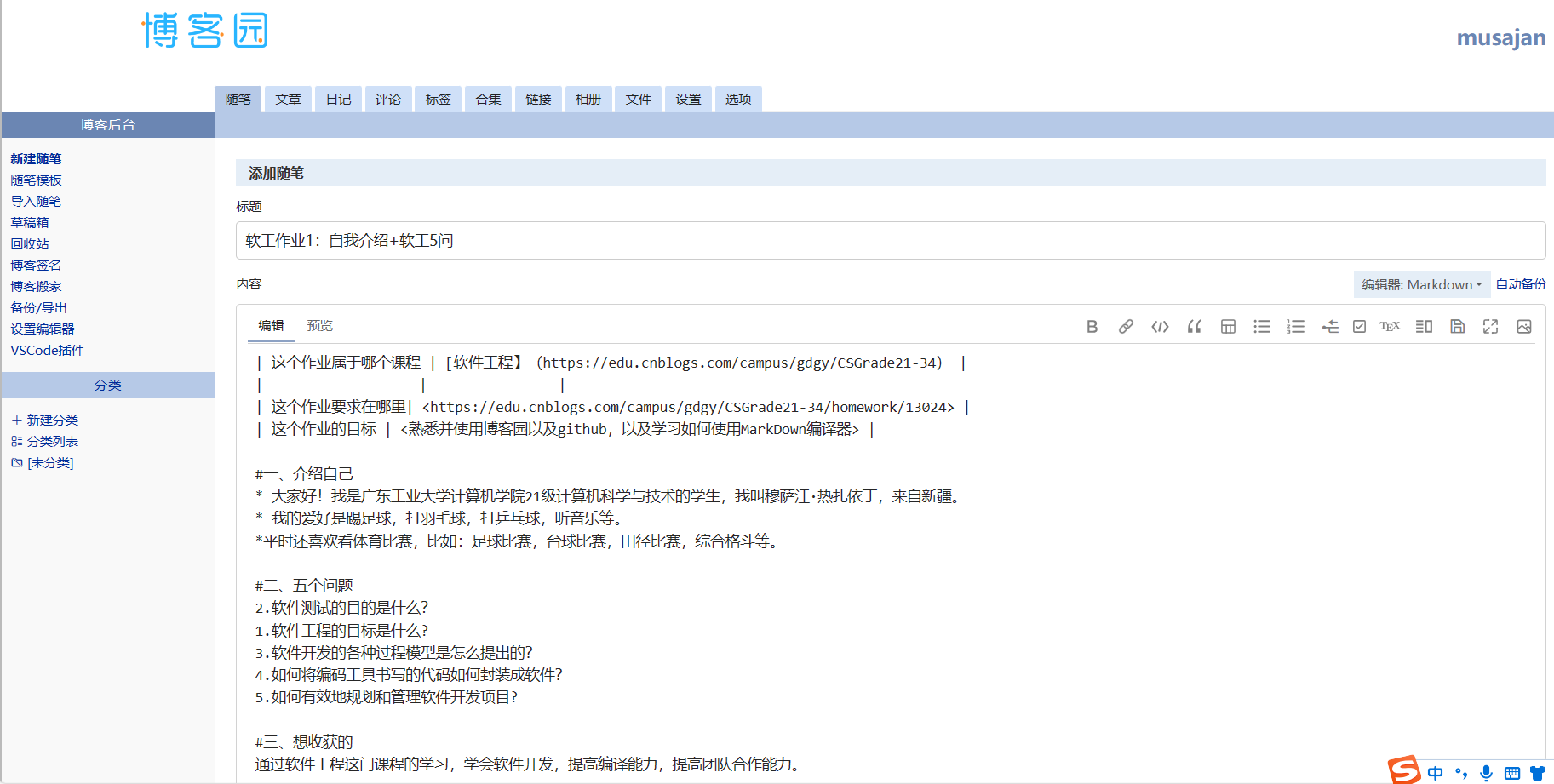 | 这个作业的目标 | <熟悉并使用博客园以及github,以及学习如何使用MarkDown编译器> |