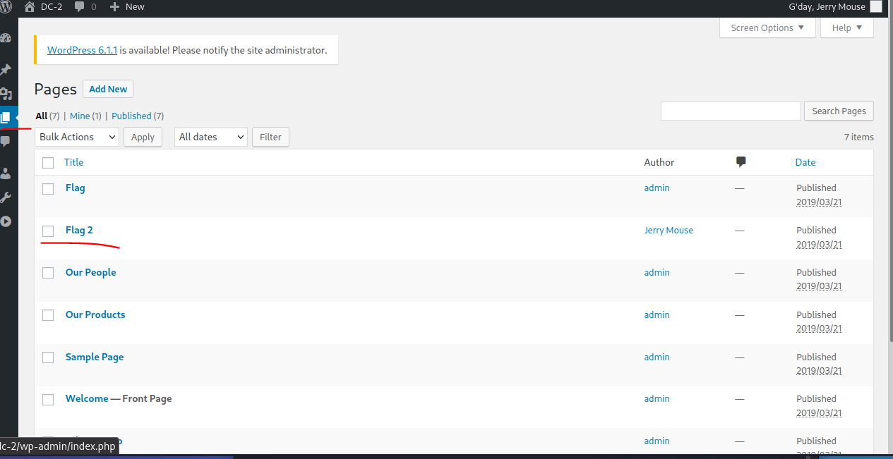 让你使用cewl生成字典,进行暴力破解,cms为wordpress,可以进行目录爆破或者搜默认位置登录位置为wp-admin,尝试弱密码失败,但是知道用户名了是admin