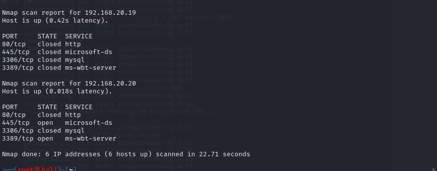 proxychains nmap -sT -T4 192.168.20.15-20 -p80,445,3389,3306