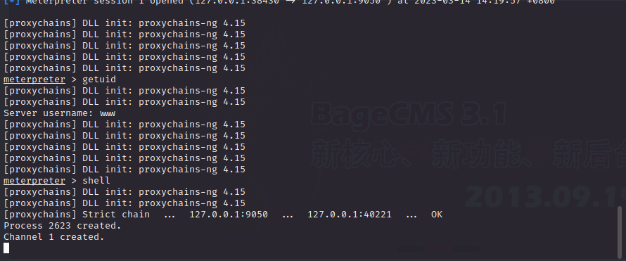 socks代理的流量不稳定,连接蚁剑也不稳定,木马上传不成功或木马还没执行,就掉线了,可以通过生成php马,改写在第二台bagecms的源码中,然后在生成一个正向连接的木马,通过php的木马上传到目标靶机,也就是ubuntu上,再通过php木马去执行上传正向连接的木马,使其上线