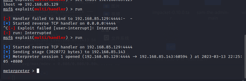 #启动msf ,开启监听,监听端口默认4444,和生成的木马端口不同时,需要修改成生成的木马端口