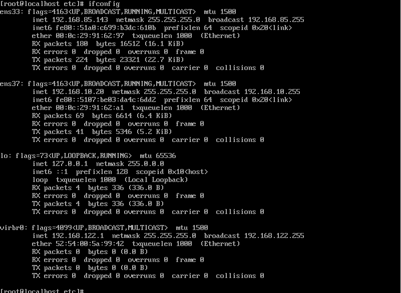 systemctl restart network #重启网络,可能会失败,但ifconfig后只要有ip即可