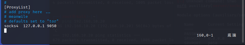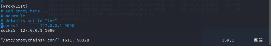 在使用各种工具时,加上proxychains就是代表流量经过这里转发