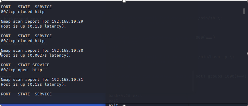 proxychains nmap -sT -T4 192.168.10.0/24-p80